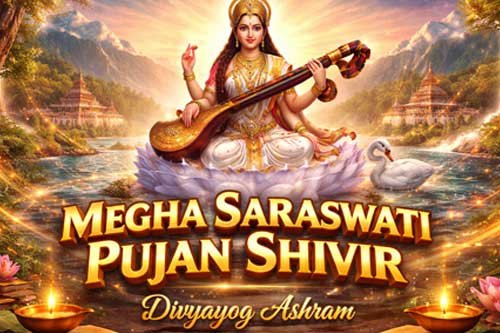 Medha Saraswati Pujan Shivir (23. JAN. 2026- Basant Panchami) विद्यार्थियों के जीवन में ज्ञान, स्मरण शक्ति और आत्मविश्वास जगाने का एक विशेष अवसर है। यह शिविर विद्या की देवी माता सरस्वती के मेघा स्वरूप को समर्पित है। यह पूजन विशेष रूप से बुद्धि, एकाग्रता और सीखने की क्षमता बढ़ाने के लिए किया जाता है।