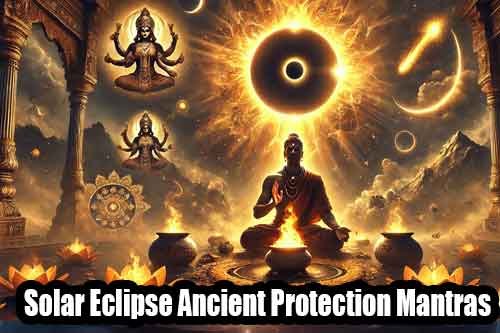 Solar Eclipse Ancient Protection Mantras – सूर्य ग्रहण (Solar Eclipse) को भारतीय परंपरा में हमेशा से विशेष और संवेदनशील समय माना गया है। यह केवल खगोलीय घटना नहीं है, बल्कि इसका सीधा असर हमारे शरीर, मन और आत्मा पर पड़ता है। प्राचीन शास्त्रों में कहा गया है कि ग्रहण का समय नकारात्मक ऊर्जा और अदृश्य शक्तियों की सक्रियता को बढ़ा देता है। इसलिए, यह वह क्षण भी है जब साधक को अपनी रक्षा, शुद्धि और आध्यात्मिक शक्ति को बढ़ाने के लिए विशेष मंत्रों का सहारा लेना चाहिए।