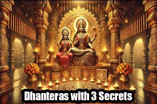 Dhanteras with 3 Secrets धनतेरस का दिन देवी लक्ष्मी और भगवान कुबेर दोनों के पूजन के लिए अत्यंत शुभ माना जाता है। यह वह पवित्र समय होता है जब धन और सौभाग्य की ऊर्जा पृथ्वी पर सक्रिय होती है। इस दिन यदि सही विधि से पूजा की जाए और तीन विशेष वस्तुओं को घर लाया जाए, तो कुबेर का आशीर्वाद स्वयं आपके घर में ठहर जाता है।